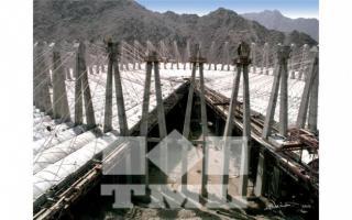 The project was the construction of 340 meter diameter stayed reinforced concrete Shell roof to cover approximately 1.000.000 m3 circular bulk water storage reservoir near Al-Maarsine-Makkah. The Project mainly consisted of the construction of 60 m high 88 concrete towers by slipforming technology and 110+60 meter radial concrete beams supported by prestressing cables from these towers, and the installation of precast concrete Shell roof panels 6.5 cm thick.